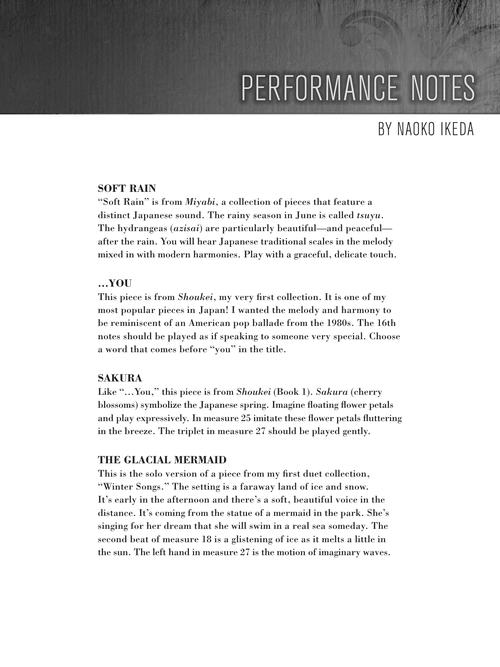 Composer's Choice - Naoko Ikeda 8 Original Early to Mid-Intermediate Level Piano Solos Publisher: Willis Music Category: Educational Keyboard Series: Willis Format: Softcover Eight great pieces by Naoko Ikeda complete with performance notes! This collection includes...Regular price $10.99