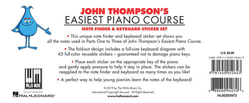 Note Finder & Keyboard Sticker Set John Thompson's Easiest Piano Course Publisher: Willis Music Category: Educational Keyboard Series: Willis Format: General Merchandise A unique note finder and keyboard sticker set using a fold-out keyboard. Includes 43...Regular price $8.99 -
