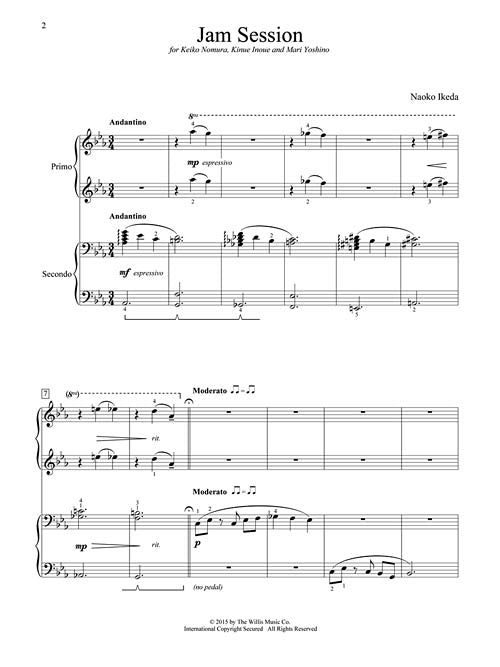 Jam Session Mid-Intermediate Level 1 Piano, 4 Hands Publisher: Willis Music Category: Educational Keyboard Series: Willis Format: Paperback Smooth, sparse, and sinuous - this jazz-tinged duet will thrill and delight. Includes an optional improvisatory section. Key:...Regular price $4.99