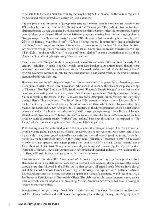 Author: Arthur Migliazza How to Play Boogie Woogie Piano Softcover Audio Online This comprehensive instructional book takes students through a step-by-step process of learning both the basics and the more advanced techniques of the style so...Regular price $23.99 -