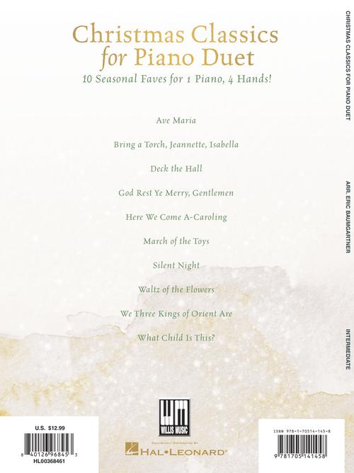 Christmas Classics for Piano Duet 10 Seasonal Duets for Two Publisher: Willis Music Category: Educational Keyboard Series: Willis Format: Softcover Ten beautiful favorites for 1 piano, 4 hands are included in this holiday collection! Titles: Ave...Regular price $17.99 -