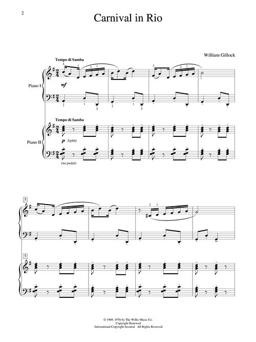 Carnival in Rio (2P, 4H) Early Intermediate Level Publisher: Willis Music Category: Educational Keyboard Series: Willis Format: Paperback Gillock's popular piano solo Carnival in Rio is now available for 2 pianos, 4 hands! This recital pleaser...Regular price $5.99 -