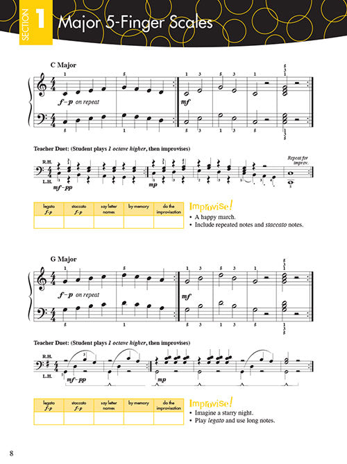 Author: Nancy Faber Piano Adventures Scale and Chord Book 1 Five-Finger Scales and Chords Softcover Playing 5-finger scales has significant value for early-level pianists. This innovative book helps students chart progress through all major and minor...Regular price $10.99 -