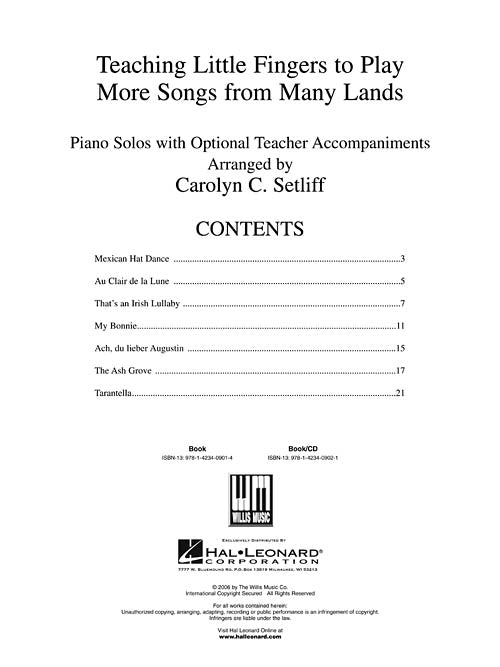 Teaching Little Fingers To Play More Songs From Many Lands Willis Music Softcove