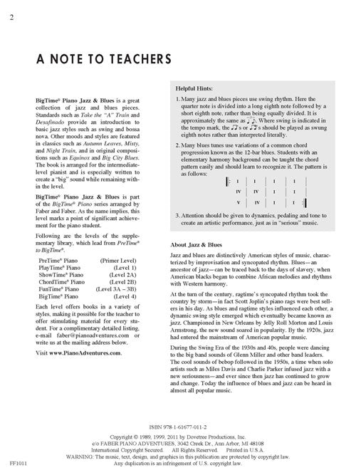 Arranger: Nancy Faber BigTime® Piano Jazz & Blues Level 4 Publisher: Faber Piano Adventures Category: Educational Keyboard Series: Faber Piano Adventures® Format: Softcover BigTime® Piano Jazz & Blues is a great collection of jazz and blues...Regular price $11.99 -