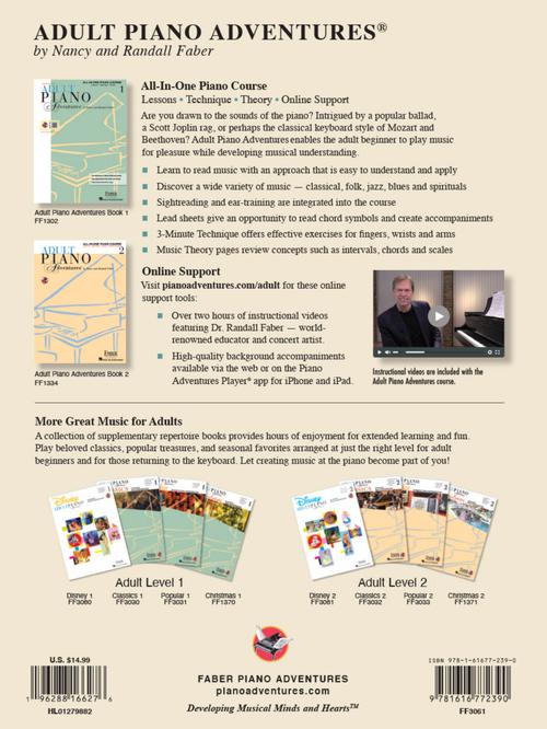 Adult Piano Adventures - Disney Book 1 Classic and Contemporary Disney Hits Publisher: Faber Piano Adventures Category: Educational Keyboard Series: Faber Piano Adventures® Format: Softcover Adult Piano Adventures Disney Book 1 offers a bounty of beloved...Regular price $17.99 -