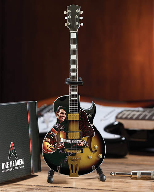 Each 1:4 scale ornamental replica guitar is individually handcrafted with solid wood and metal tuning keys. Each guitar model is approximately 10 inch. in length and comes complete with a high-quality miniature adjustable A-frame stand and guitar case gift box. Axes Heaven Miniature Replicas look great, but are not playable.