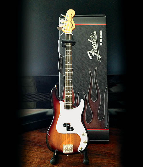 Each 1:4 scale ornamental replica guitar is individually handcrafted with solid wood and metal tuning keys. Each guitar model is approximately 10 inch. in length and comes complete with a high-quality miniature adjustable A-frame stand and guitar case gift box. Axes Heaven Miniature Replicas look great, but are not playable.