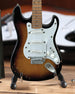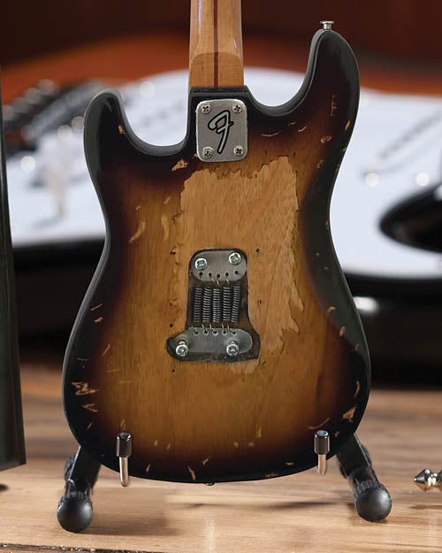 This miniature replica model guitars are officially licensed to commemorate iconic Fender(TM) instruments. Each 1:4 scale ornamental replica guitar is individually handcrafted with solid wood and metal tuning keys. Each guitar model is approximately 10 inch. in length and comes complete with a high-quality miniature adjustable A-frame stand and guitar case gift box. Axe Heaven Miniature Replicas look great, but are not playable.