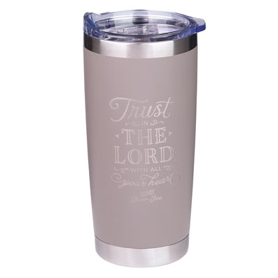 Trust in the Lord is the theme of this taupe Stainless Steel Mug in a matte finish. A travel mug is a great gift for anyone who spends a lot of time on the road, whether its a mom driving kids around town, a dad commuting to work and back, or grandparents who like to keep hydrated, this stainless steel mug in its gender-neutral color scheme will do just that. At 20 fluid ounce capacity and double wall insulation, this stainless steel mug will keep your hot drinks hot and your cold ones cold.