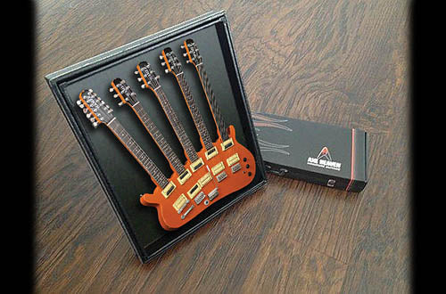 Each 1:4 scale ornamental replica guitar is individually handcrafted with solid wood and metal tuning keys. Each guitar model is approximately 10 inch. in length and comes complete with a high-quality miniature adjustable A-frame stand and guitar case gift box. Axe Heaven Miniature Replicas look great, but are not playable.