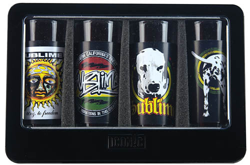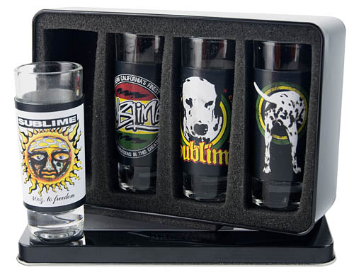 Celebrate your love for Sublime with these officially licensed 2oz shot glasses. They come with interchangeable aluminum sleeves in a windowed tin gift storage box.