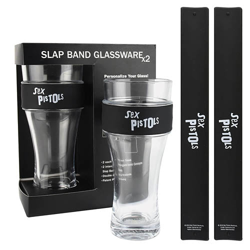 Sex Pistols 2-Pack Slap Bands & Glassware Lift a drink of cheer to your favorite band with these officially licensed pint glasses. Slap the band on the glass and instantly make it cooler. Each package includes...Regular price $29.99 -