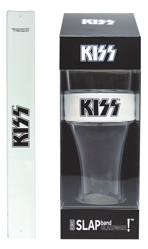 KISS Slap Band Single Pint Glassware White Band/Black Logo Publisher: Iconic Concepts Category: Music Related Products Series: Iconic Concepts Format: General Merchandise Lift a drink of cheer to KISS with this officially licensed 16 oz. pint...Regular price $15.99 -