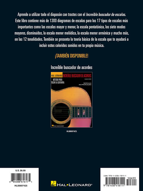 Author: Various Incredible Scale Finder - Spanish Edition Increíble Buscador De Escalas Publisher: Hal Leonard Category: Guitar, Bass & Fretted Series: Guitar Method Format: Softcover Aprende a utilizar todo el diapasón con trastes! Este libro contiene...Regular price $9.99 -