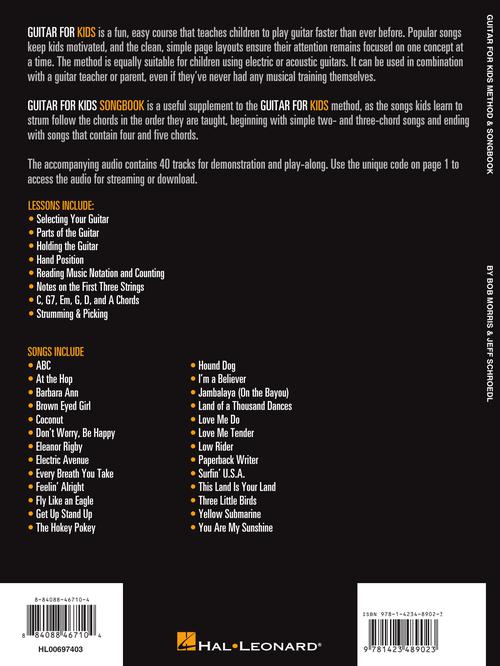 Author: Bob Morris Guitar for Kids Method & Songbook Hal Leonard Guitar Method Publisher: Hal Leonard Category: Guitar, Bass & Fretted Series: Guitar Method Format: Softcover Audio Online This convenient pack combines the Guitar for Kids...Regular price $29.99