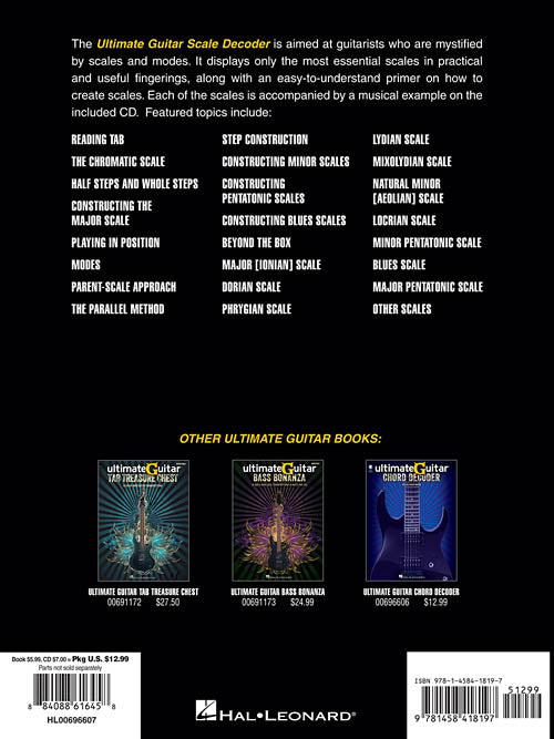 Author: Joe Charupakorn Ultimate-Guitar Scale Decoder Essential Scales and Modes for Guitar Publisher: Hal Leonard Category: Guitar, Bass & Fretted Series: Guitar Educational Format: Softcover with CD Guitar Tab: YES The Ultimate-Guitar Scale Decoder is aimed...Regular price $15.99