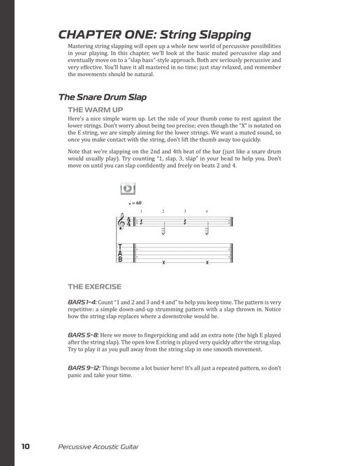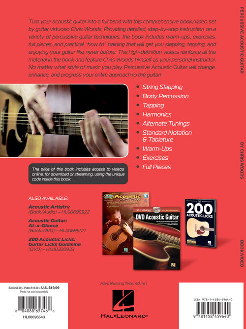 Author: Chris Woods Percussive Acoustic Guitar Publisher: Hal Leonard Category: Guitar, Bass & Fretted Series: Guitar Educational Format: Softcover Video Online Guitar Tab: YES Turn your acoustic guitar into a full band with this comprehensive book...Regular price $27.99 -