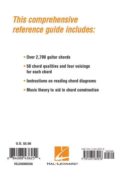 Hal Leonard Pocket Guitar Chord Dictionary Publisher: Hal Leonard Category: Guitar, Bass & Fretted Series: Guitar Educational Format: Softcover Quick - what's that chord? This compact reference guide includes: over 2,700 guitar chord diagrams in all...Regular price $11.99