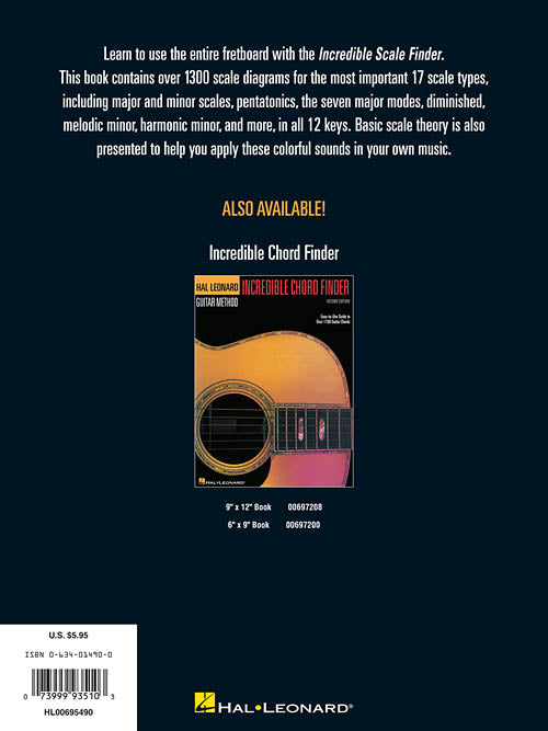 Author: Various Authors Incredible Scale Finder A Guide to Over 1,300 Guitar Scales 9 x 12 Ed. Hal Leonard Guitar Method Supplement Publisher: Hal Leonard Category: Guitar, Bass & Fretted Series: Guitar Method Format: Paperback Learn...Regular price $11.99 -