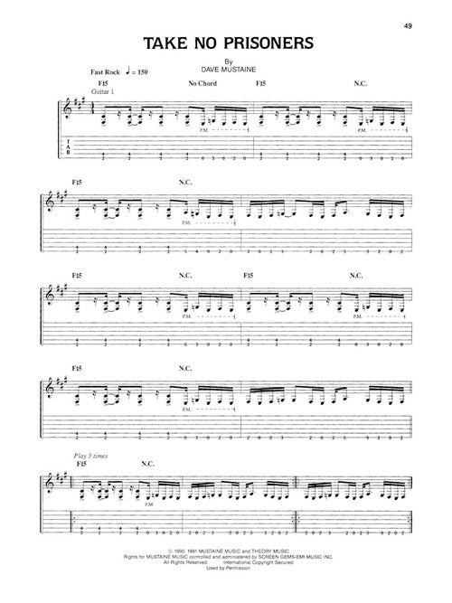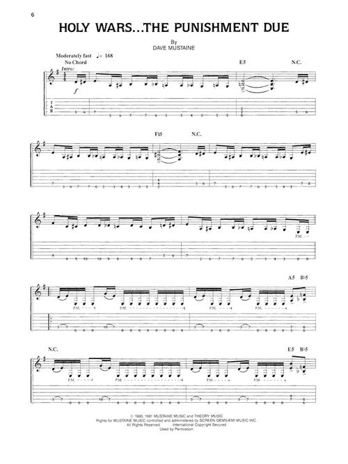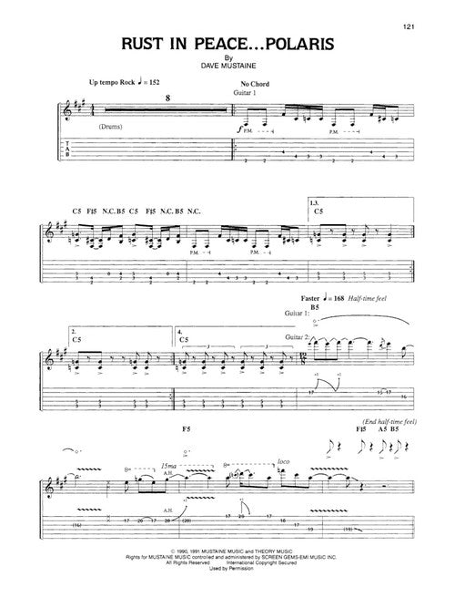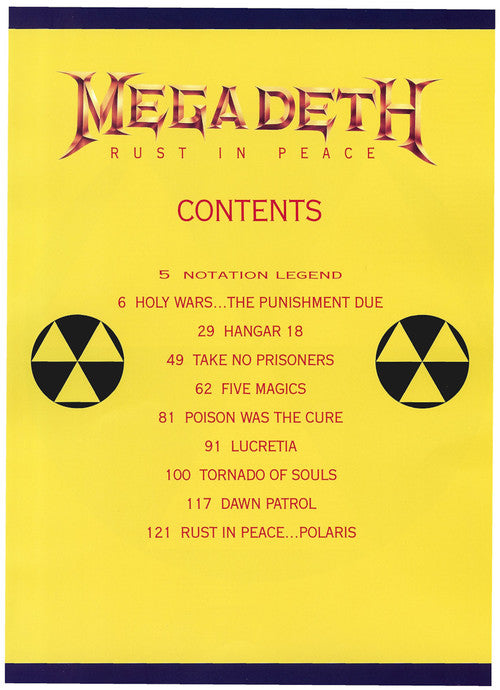 Megadeth - Rust in Peace Publisher: Hal Leonard Category: Guitar, Bass & Fretted Series: Guitar Recorded Version Format: Paperback Guitar Tab: YES Guitar tab for: Dawn Patrol · Five Magics · Hangar 18 · Holy Wars...The...Regular price $39.99 -