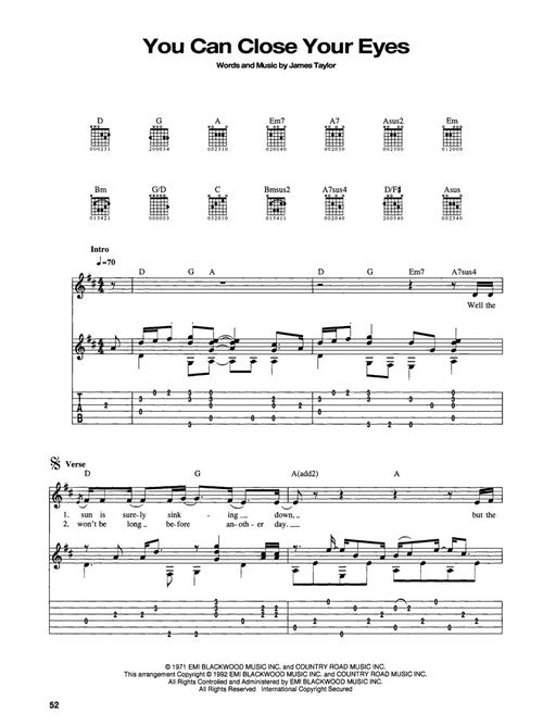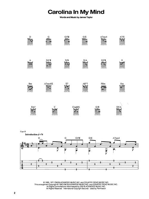 The Best of James Taylor Publisher: Hal Leonard Category: Guitar, Bass & Fretted Series: Guitar Recorded Version Format: Paperback Guitar Tab: YES 9 of his best, including: Carolina on My Mind · Don't Let Me Be...Regular price $29.99 -