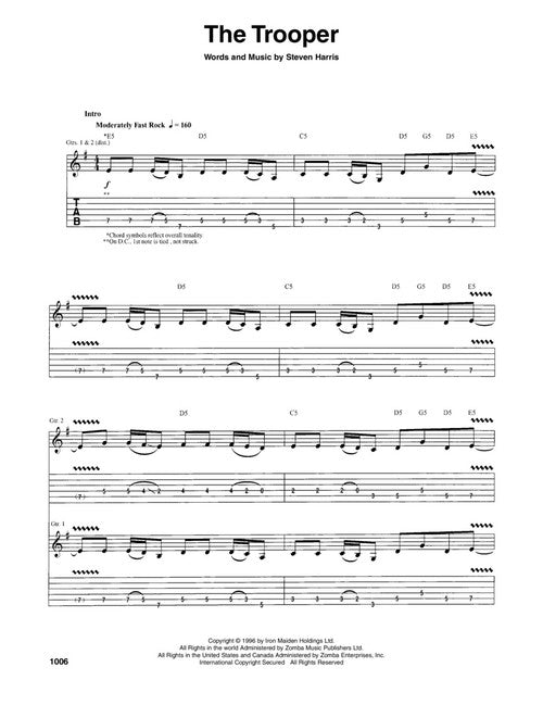 Iron Maiden Anthology Publisher: Hal Leonard Category: Guitar, Bass & Fretted Series: Guitar Recorded Version Format: Paperback Guitar Tab: YES 17 hits from these metal masters, including: Bring Your Daughter to the Slaughter ยท Evil That...Regular price $41.99