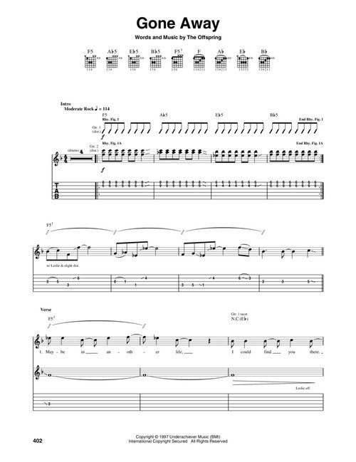 The Offspring - Greatest Hits Publisher: Hal Leonard Category: Guitar, Bass & Fretted Series: Guitar Recorded Version Format: Softcover Guitar Tab: YES 14 songs from this Californian punk metal band's CD of their top hits. Includes:...Regular price $32.99 -