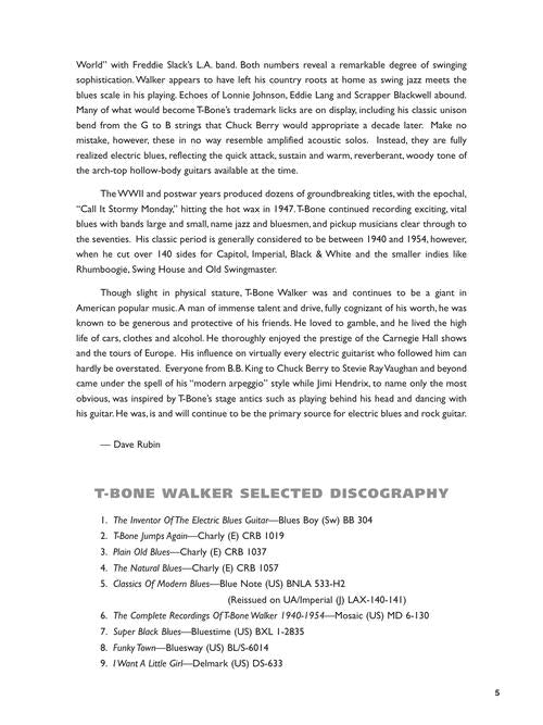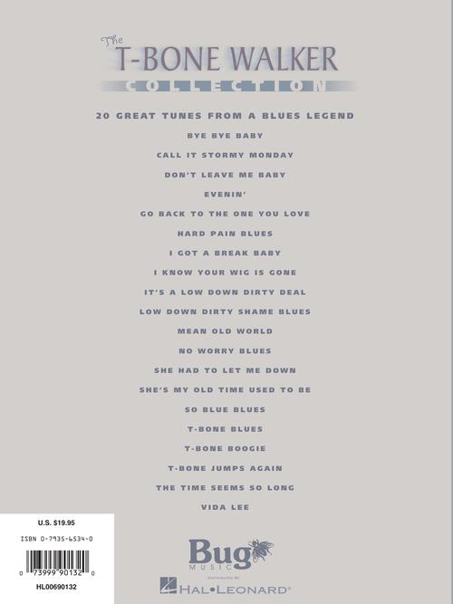 The T-Bone Walker Collection Publisher: Hal Leonard Category: Guitar, Bass & Fretted Series: Guitar Recorded Version Format: Paperback Guitar Tab: YES This terrific collection features 20 tunes from wildly influential (B.B. King, Chuck Berry, Stevie Ray...Regular price $32.99 -