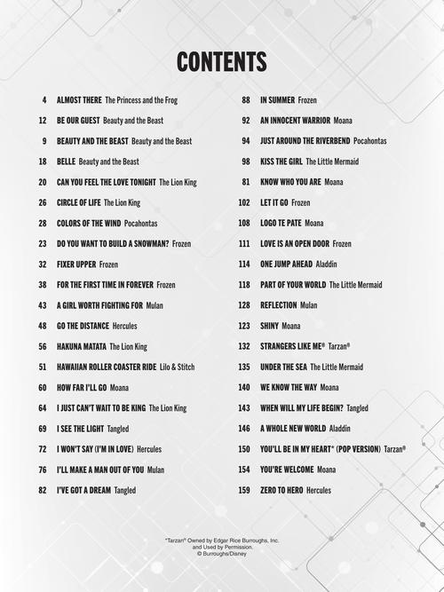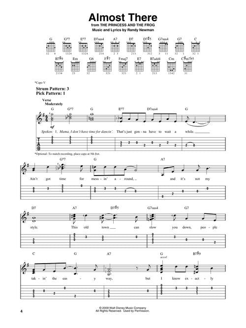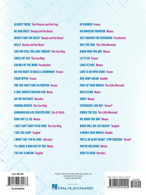 Even novice guitarists can play their favorite Disney songs with this great collection of 40 favorites from movies like Beauty and the Beast, Frozen, The Lion King, Moana, and more! Book includes notes and tab to help to make learning easy. Songs include: Be Our Guest · Beauty and the Beast · Can You Feel the Love Tonight · Colors of the Wind · Do You Want to Build a Snowman? · A Girl Worth Fighting For · Go the Distance · Hakuna Matata · How Far I'll Go · Just Around the Riverbend · Kiss the Girl · Let It Go · Reflection · Under the Sea · When Will My Life Begin? · A Whole New World · You'll Be in My Heart (Pop Version)* · You're Welcome · and more!