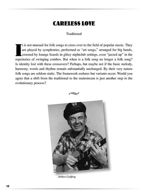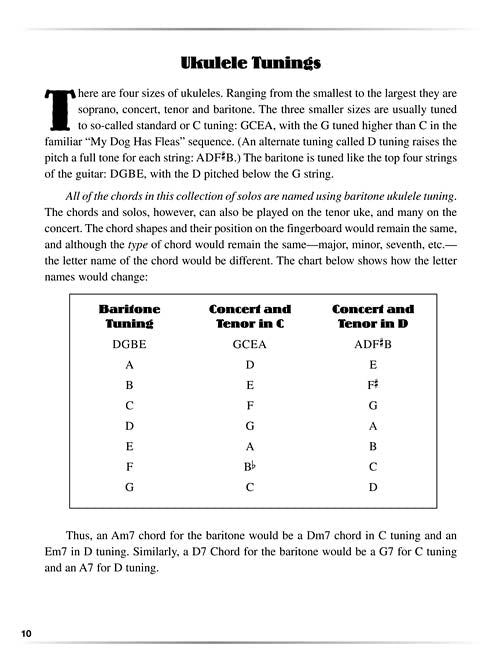 Enjoy this super mix of jazz, blues, barbershop, gospel, classical, ethnic, folk and old favorites! This collection features 27 solos arranged with just chord diagrams for players at all levels of ability. Songs include: Aura Lee · Down by the Old Mill Stream · Hard Times Come Again No More · My Wild Irish Rose · Twelve-Bar Blues · Liebestraum · Ja-Da · My Buddy · Sweet Adeline · In the Bleak Midwinter · Memories · Toyland · Dark Eyes · and more. Each solo is preceded by a page of background information with interesting comments about the composers and the songs themselves. Introductory text provides instructions, detailed guidelines, helping playing tips, and useful insights. Although intended primarily for the baritone ukulele, many of the solos can be played by both concert and tenor ukes, as well as on the top four strings of the guitar.