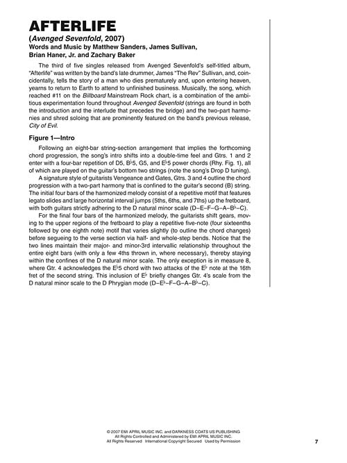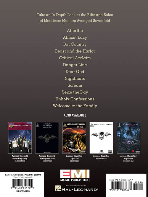 Take an in-depth look at the riffs & solos of these metalcore masters! You'll learn to play 12 of A7X's hits with this book with online audio access featuring instruction and demo tracks to assist you. Teaches the signature licks from: Afterlife · Almost Easy · Bat Country · Beast and the Harlot · Critical Acclaim · Danger Line · Dear God · Nightmare · Scream · Seize the Day · Unholy Confessions · Welcome to the Family. Audio is accessed online using the unique code inside the book and can be streamed or downloaded. The audio files include PLAYBACK+, a multi-functional audio player that allows you to slow down audio without changing pitch, set loop points, change keys, and pan left or right.