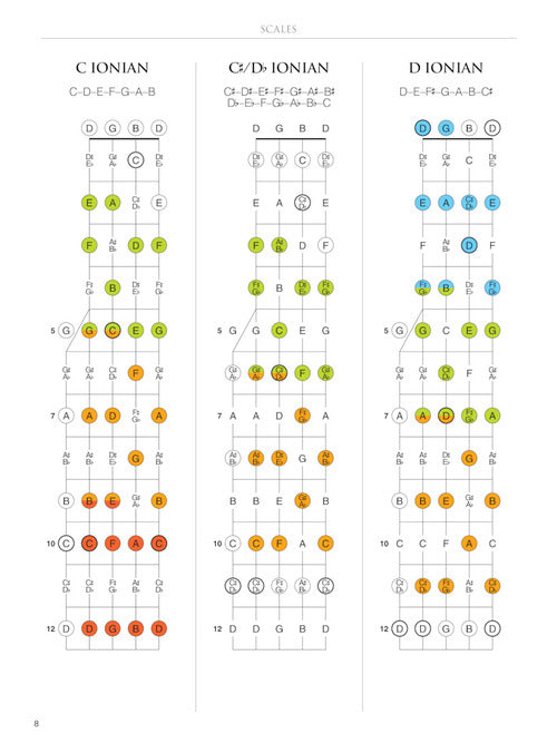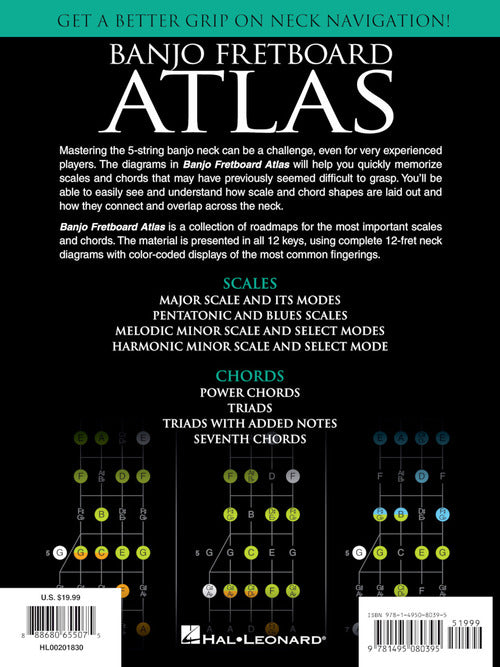 Mastering the 5-string banjo neck can be a challenge, even for very experienced players. The diagrams in this book will help you quickly memorize scales and chords that may have previously seemed difficult to grasp. You'll be able to easily see and understand how scale and chord shapes are laid out and how they connect and overlap across the neck. The material is presented in all 12 keys, using complete 12-fret neck diagrams with color-coded displays of the most common fingerings.