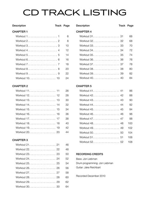 Perfect for beginning to advanced players, this book with online audio access by world-renowned bassist and educator Jon Liebman provides a 52-week, one-exercise-per-week workout program for developing, improving and maintaining bass guitar technique. Liebman teaches: chromatics; scales & arpeggios; string-crossing and advanced patterns; slapping & popping; and more - all in styles ranging from rock, funk and R&B to jazz, disco, reggae and more. Bassists using Bass Aerobics will benefit from increased speed, improved dexterity, better accuracy and heightened coordination - not to mention an awesome new groove vocabulary! The accompanying online audio contains all 52 workout grooves for both demonstration and play-along.