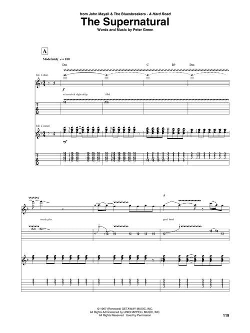 This British bluesman, called one of the greatest blues guitarists ever, made a name for himself with the Bluesbreakers and Fleetwood Mac and has often been compared to Clapton and B.B. King. This folio transcribes 13 of his songs, including: Albatross · Black Magic Woman · A Fool No More · The Green Manalishi · Long Grey Mare · Man of the World · Need Your Love So Bad · Oh Well Part 1 · Rattlesnake Shake · Shake Your Money Maker · Slabo Day · The Stumble · The Supernatural.