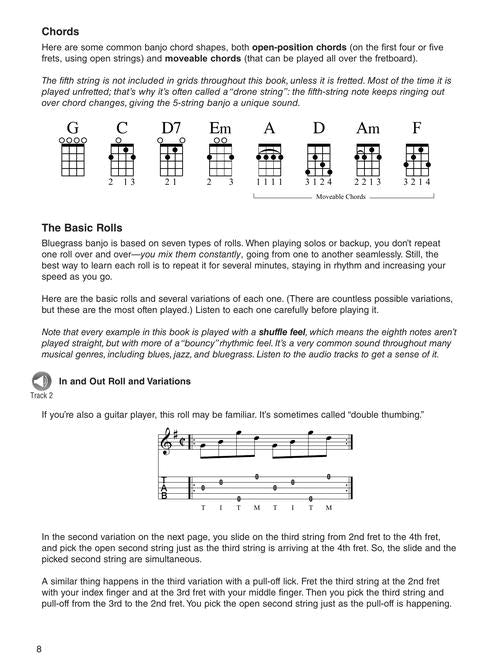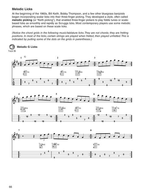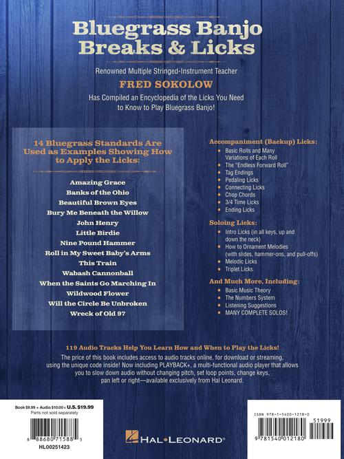 This encyclopedia of licks you need to know to play 5-string bluegrass banjo includes accompaniment (backup) licks, soloing licks, as well as basic music theory, the Numbers system, listening suggestions, and many complete solos, plus 119 audio tracks available online for download or streaming to help you learn how and when to play the licks. 14 bluegrass standards are used as examples showing how to apply the licks: Amazing Grace · Bury Me Beneath the Willow · John Henry · Little Birdie · Nine Pound Hammer · Roll in My Sweet Baby's Arms · This Train · Wabash Cannonball · When the Saints Go Marching In · Will the Circle Be Unbroken · and more. Audio is accessed online using the unique code inside the book and can be streamed or downloaded. The audio files include PLAYBACK+, a multi-functional audio player that allows you to slow down audio without changing pitch, set loop points, change keys, and pan left or right.