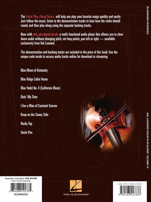 The Violin Play-Along Series will help you play your favorite songs quickly and easily. Just follow the music, listen to the CD to hear how the violin should sound, and then play along using the separate backing tracks. With the melody and lyrics included in the book, you may also choose to sing along. The audio CD is playable on any CD player, and also enhanced so Mac & PC users can adjust the recording to any tempo without changing pitch! This volume includes the songs: Blue Moon of Kentucky · Blue Ridge Cabin Home · Blue Yodel No. 4 (California Blues) · Doin' My Time · I Am a Man of Constant Sorrow · Keep on the Sunny Side · Rocky Top · Uncle Pen.