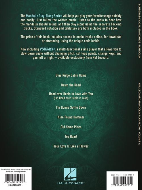 The Mandolin Play-Along Series will help you play your favorite songs quickly and easily. Just follow the written music, listen to the audio to hear how the mandolin should sound, and then play along using the separate backing tracks. Standard notation and tablature are both included in the book. The price of this book includes access to audio tracks online, for download or streaming, using the unique code inside. This volume includes: Blue Ridge Cabin Home · Down the Road · Head over Heels in Love with You (I'm Head over Heels in Love) · I'm Gonna Settle Down · Nine Pound Hammer · Old Home Place · Toy Heart · Your Love Is like a Flower.