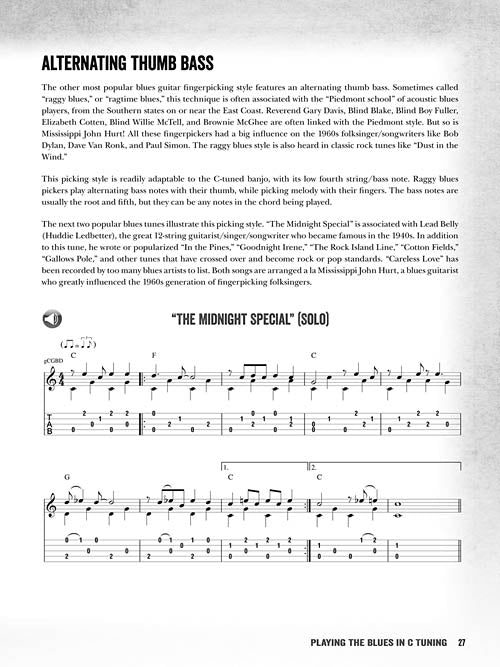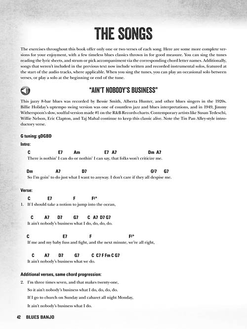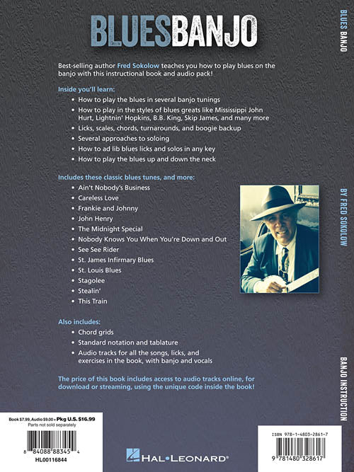 Blues Banjo Lessons, Licks, Riffs, Songs & More Softcover Audio Online Best-selling author Fred Sokolow teaches you how to play blues on the banjo with this instructional book and audio pack! You'll learn: how to play the blues in several banjo tunings; how to play in the styles of blues greats like Mississippi John Hurt, Lightnin' Hopkins, B.B. King, Skip James, and many more; licks, scales, chords, turnarounds and boogie backup; several approaches to soloing; how to ad lib blues licks and solos in any key; how to play the blues up and down the neck; and more. Includes these classic blues tunes: Ain't Nobody's Business · Careless Love · Frankie and Johnny · John Henry · The Midnight Special · Nobody Knows You When You're Down and Out · See See Rider · St. James Infirmary Blues · St. Louis Blues · and more. Also includes chord grids, standard notation and tablature, audio tracks for all the songs, licks and exercises in the book, with banjo and vocals. The price of this book includes access to audio tracks online for download or streaming using the unique code inside the book! Online audio is accessed at halleonard.com/mylibrary (http://www.halleonard.com/mylibrary) Inventory # : 00116844 UPC: 884088883454 ISBN: 1480328618 Width: 9" Length: 12" Height: 0.212" Product Weight: 0.5 lbs. Number of Pages: 64