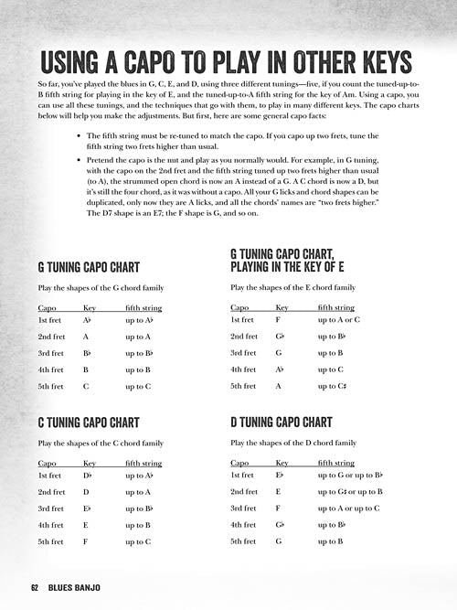 Blues Banjo Lessons, Licks, Riffs, Songs & More Publisher: Hal Leonard Category: Guitar, Bass & Fretted Series: Banjo Format: Softcover Audio Online Guitar Tab: YES Best-selling author Fred Sokolow teaches you how to play blues on the banjo with this instructional book and audio pack! You'll learn: how to play the blues in several banjo tunings; how to play in the styles of blues greats like Mississippi John Hurt, Lightnin' Hopkins, B.B. King, Skip James, and many more; licks, scales, chords, turnarounds and boogie backup; several approaches to soloing; how to ad lib blues licks and solos in any key; how to play the blues up and down the neck; and more. Includes these classic blues tunes: Ain't Nobody's Business · Careless Love · Frankie and Johnny · John Henry · The Midnight Special · Nobody Knows You When You're Down and Out · See See Rider · St. James Infirmary Blues · St. Louis Blues · and more. Also includes chord grids, standard notation and tablature, audio tracks for all the songs, licks and exercises in the book, with banjo and vocals. The price of this book includes access to audio tracks online for download or streaming using the unique code inside the book! Online audio is accessed at halleonard.com/mylibrary (http://www.halleonard.com/mylibrary) Inventory # : 00116844 UPC: 884088883454 ISBN: 1480328618 Width: 9" Length: 12" Height: 0.163" Product Weight: 0.5 lbs. Number of Pages: 64