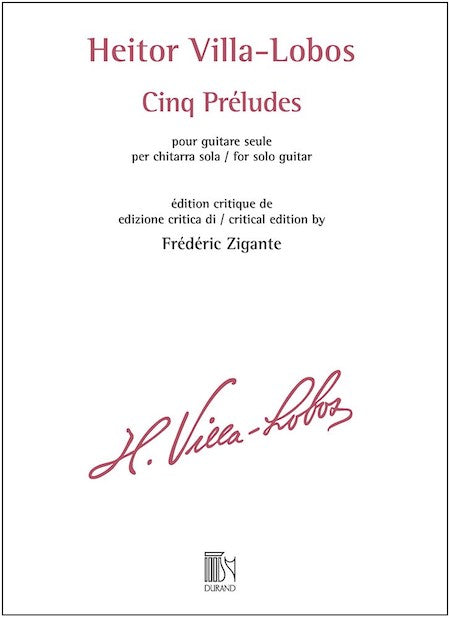 The Cinq Préludes by Heitor Villa-Lobos represent the Brazilian composer's last work for solo guitar and were written in the summer of 1940. They do not constitute a single cycle, but rather a heterogeneous collection, similar in spirit to a collection of pages from an album, with each one developing, in its own individual way, a different stylistic principle. In terms of instrumental technique, Heitor Villa-Lobos places the Préludes in a kind of ideal balance point between the still nineteenth-century writing style of the Suite populaire brésilienne and the daring instrumental experimentation of the Douze Études. In the present edition, the manifold editorial issues concerning Heitor Villa-Lobos' guitar music have been affronted by looking at of all of the sources available today: these efforts have thus enabled us to put together a more reliable text than those before it both in terms of the notes and the fingerings.