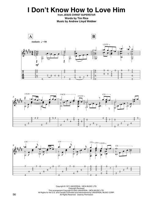 20 beautiful pop songs, movie themes, and Broadway show tunes masterfully arranged (in standard notation and tab) and recorded by David Jaggs for classical guitar. David's YouTube performance videos have garnered over 1.2 million views! Songs include: Bridge over Troubled Water · Candle in the Wind · Don't Cry for Me Argentina · Hallelujah · I Don't Know How to Love Him · Killing Me Softly with His Song · Moon River · Over the Rainbow · Wonderful Tonight · Your Song · and more. The audio recordings are accessed online using the unique code in each book. The audio can be streamed or downloaded and includes PLAYBACK+, a multi-functional audio player that allows you to slow down audio without changing pitch, set loop points, change keys, and pan left or right.