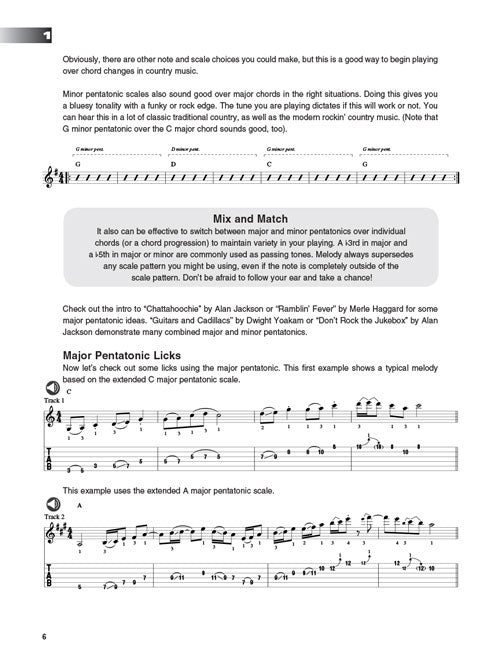This guide to playing modern and traditional electric country lead guitar includes access to audio demo tracks online for download or streaming. Topics covered include: pentatonic and other scales · string bending · hybrid picking · chicken pickin' · flatpicking · pickin' on the low strings · steel guitar · double stops · triad basics · banjo rolls · open-string cascades · cow jazz · intros and endings. Includes standard notation and tablature.
