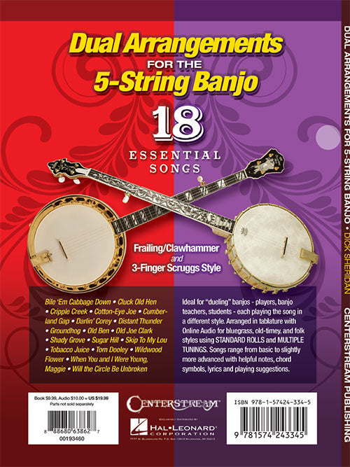 This collection features 18 essential songs ideal for dueling banjos, each playing the song in a different style. The songs are arranged in tablature with online audio for bluegrass, old-timey and folk styles using standard rolls and multiple tunings. Songs include: Cripple Creek · Cotton-Eyed Joe · Distant Thunder · Groundhog · Old Joe Clark · Skip to My Lou · Tom Dooley · Will the Circle Be Unbroken · and more.