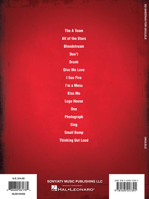 15 of the hottest hits by this British singer/songwriter in arrangements you can strum & sing on the uke, including: The A Team · Don't · Lego House · Sing · Thinking Out Loud · and more.