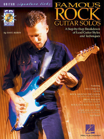 Learn the solos that defined and redefined rock guitar! This book/CD pack written by Dave Rubin provides in-depth analysis of lead work on 18 great songs: Blue on Black · Call Me the Breeze · Hit Me with Your Best Shot · Jump, Jive An' Wail · Let It Be · Living After Midnight · Mystery Train · Oye Como Va · Pretending · Pride and Joy · Ramblin' Man · Ridin' the Storm Out · Rock and Roll All Nite · Rock and Roll Hoochie Koo · Rock Around the Clock · Smoke on the Water · Sweet Emotion · White Room.