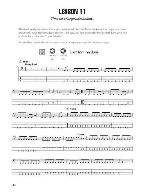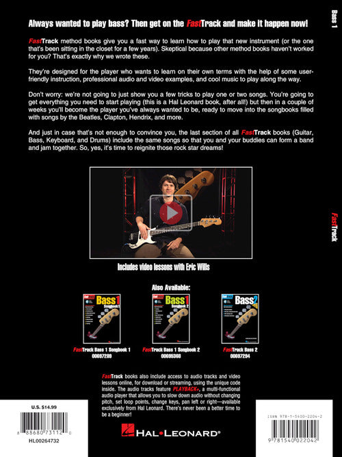 Always wanted to play bass? Then get on the FastTrack and make it happen now! FastTrack method books give you a fast way to learn how to play that new instrument (or the one that's been sitting in the closet for a few years). Skeptical because other method books haven't worked for you? That's exactly why we wrote these! They're designed for the player who wants to learn on their own terms with the help of some user-friendly instruction, professional audio and video examples, and cool music to play along the way. Don't worry: we're not going to just show you a few tricks to play one or two songs. You're going to get everything you need to start playing (this is a Hal Leonard book, after all!) but then in a couple of weeks you'll become the player you've always wanted to be, ready to move into the songbooks filled with songs by the Beatles, Clapton, Hendrix, and more. And just in case that's not enough to convince you, the last section of all FastTrack Starter Packs (Guitar, Bass, Keyboard and Drums) include the same songs so that you and your buddies can form a band and jam together. So, yes, it IS time to reignite those rock star dreams! Includes notes and tab. The audio and video are accessed online using the unique code inside each book and can be streamed or downloaded. The audio files include PLAYBACK+, a multi-functional audio player that allows you to slow down audio without changing pitch, set loop points, change keys, and pan left or right.