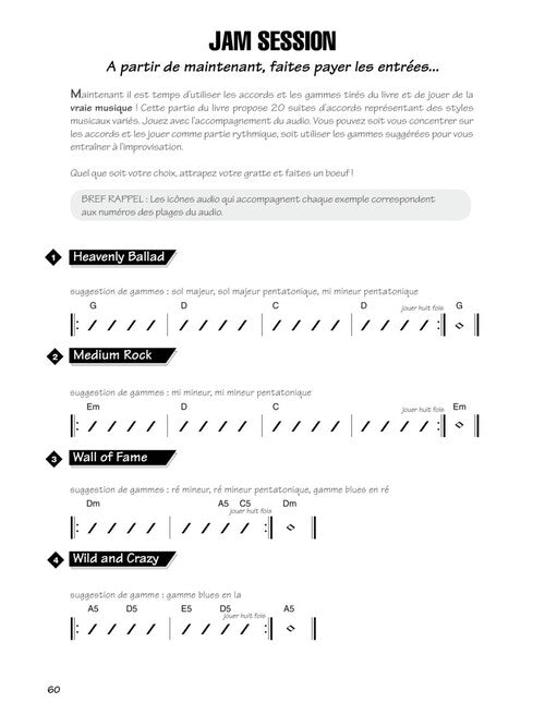 The fast way to find just the chord you need. This user-friendly reference book is jam-packed with over 1,400 chords and voicings and includes a jam session with 20 original songs using common chord progressions.