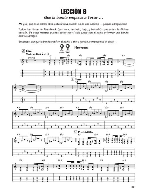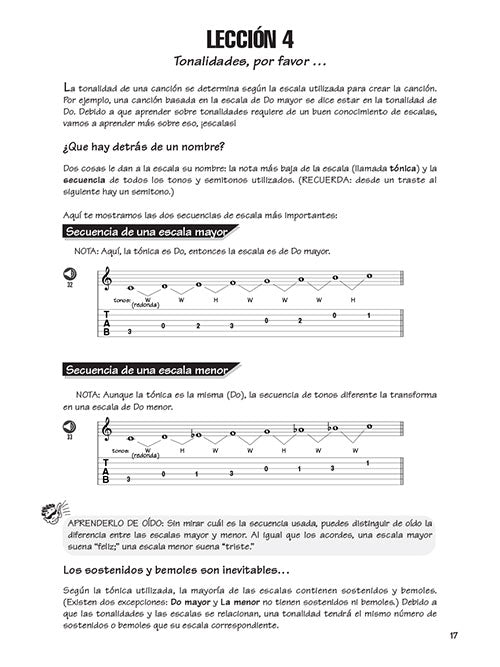 Spanish edition of the best-selling guitar instruction book featuring down to earth instruction that will get you playing today's music fast! Audio available for streaming or download using the unique code printed inside the book.