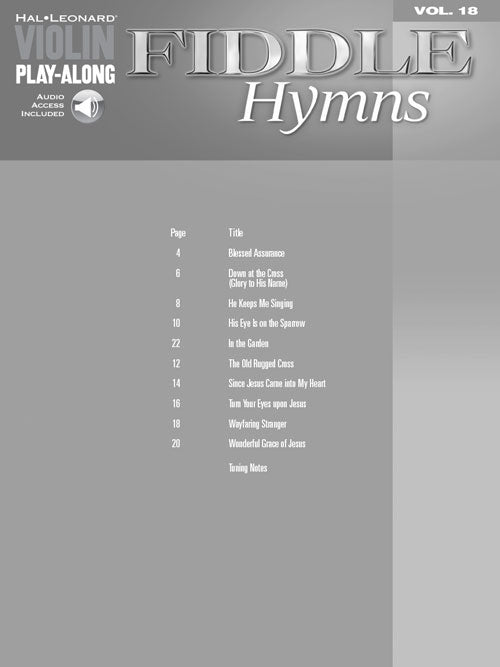 The Violin Play-Along series will help you play your favorite songs quickly and easily. Just follow the music, listen to the audio to hear how the violin should sound, and then play along using the separate backing tracks. With the melody and lyrics included in the book, you may also choose to sing along. The online audio is accessed using the unique code printed inside each book. This volume includes the songs: Blessed Assurance · Down at the Cross (Glory to His Name) · He Keeps Me Singing · His Eye Is on the Sparrow · In the Garden · The Old Rugged Cross · Since Jesus Came into My Heart · Turn Your Eyes upon Jesus · Wayfaring Stranger · Wonderful Grace of Jesus.